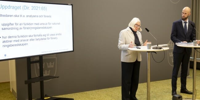 – Vi ser att det behövs bättre stöd för upphandling och avtalsskrivning. Därför vill vi att Upphandlingsmyndigheten får en tydligare uppgift att myndighetens stöd ska bidra till att krisberedskaps och totalförsvarsaspekter säkerställs i upphandling av samhälls- och totalförsvarsviktig verksamhet, säger Birgitta Böhlin.